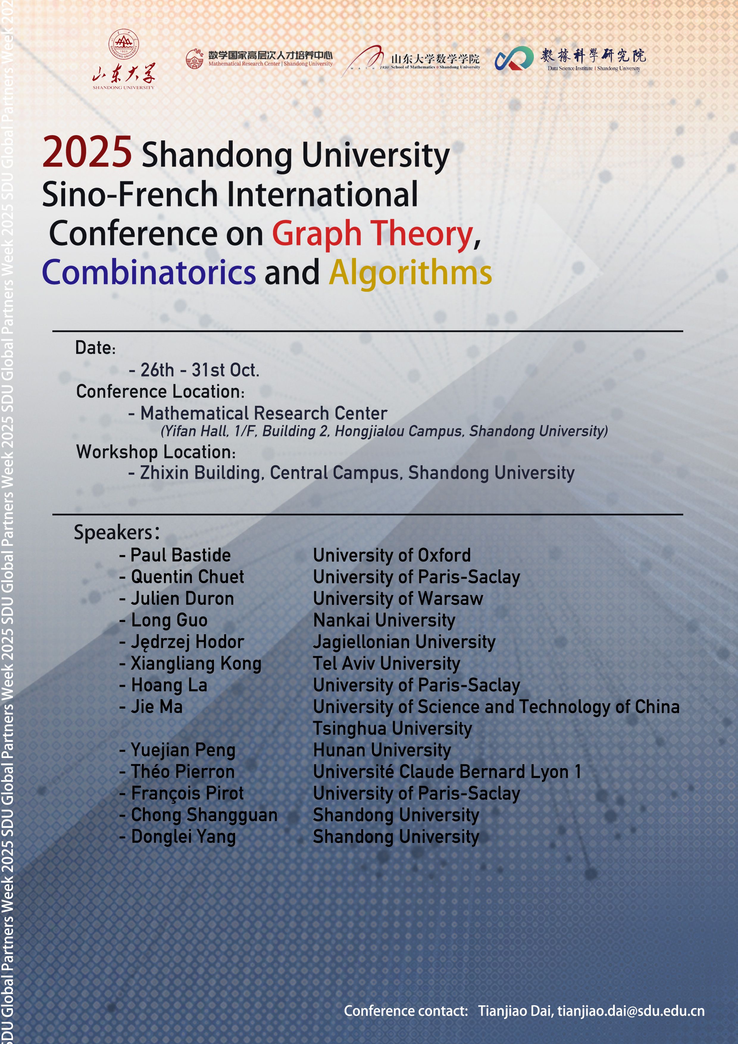2025 Shandong University Sino-French International Conference on Graph Theory, Combinatorics and Algorithms